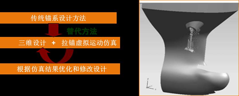 經(jīng)過(guò)與國(guó)內(nèi)行業(yè)權(quán)威設(shè)計(jì)院的合作過(guò),并將該技術(shù)應(yīng)用于船舶建造中,對(duì)錨鏈筒、錨臺(tái)、錨唇、錨穴、錨、錨鏈、錨機(jī)、止鏈器、導(dǎo)鏈滾輪、船體等進(jìn)行三維設(shè)計(jì)和自動(dòng)建模,實(shí)現(xiàn)了三維錨系計(jì),保證了錨系設(shè)計(jì)中空間位置定位的準(zhǔn)確性,并通過(guò)三維軟件導(dǎo)出二維CAD圖紙,扭轉(zhuǎn)了一直以來(lái)二維圖紙與船廠錨系施工脫節(jié)的局面,極大提高了錨系設(shè)計(jì)的效率。除此之外,利用軟件的后期的仿真功能,模擬并預(yù)報(bào)收錨過(guò)程的動(dòng)態(tài)效果并給出調(diào)整方案。